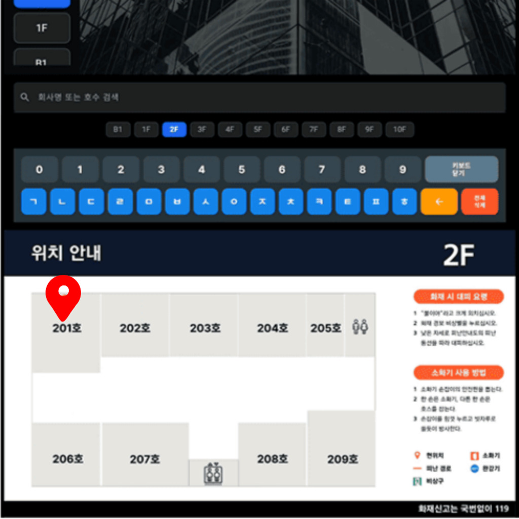 빌딩 위치안내/건물 안내/층별 안내 솔루션