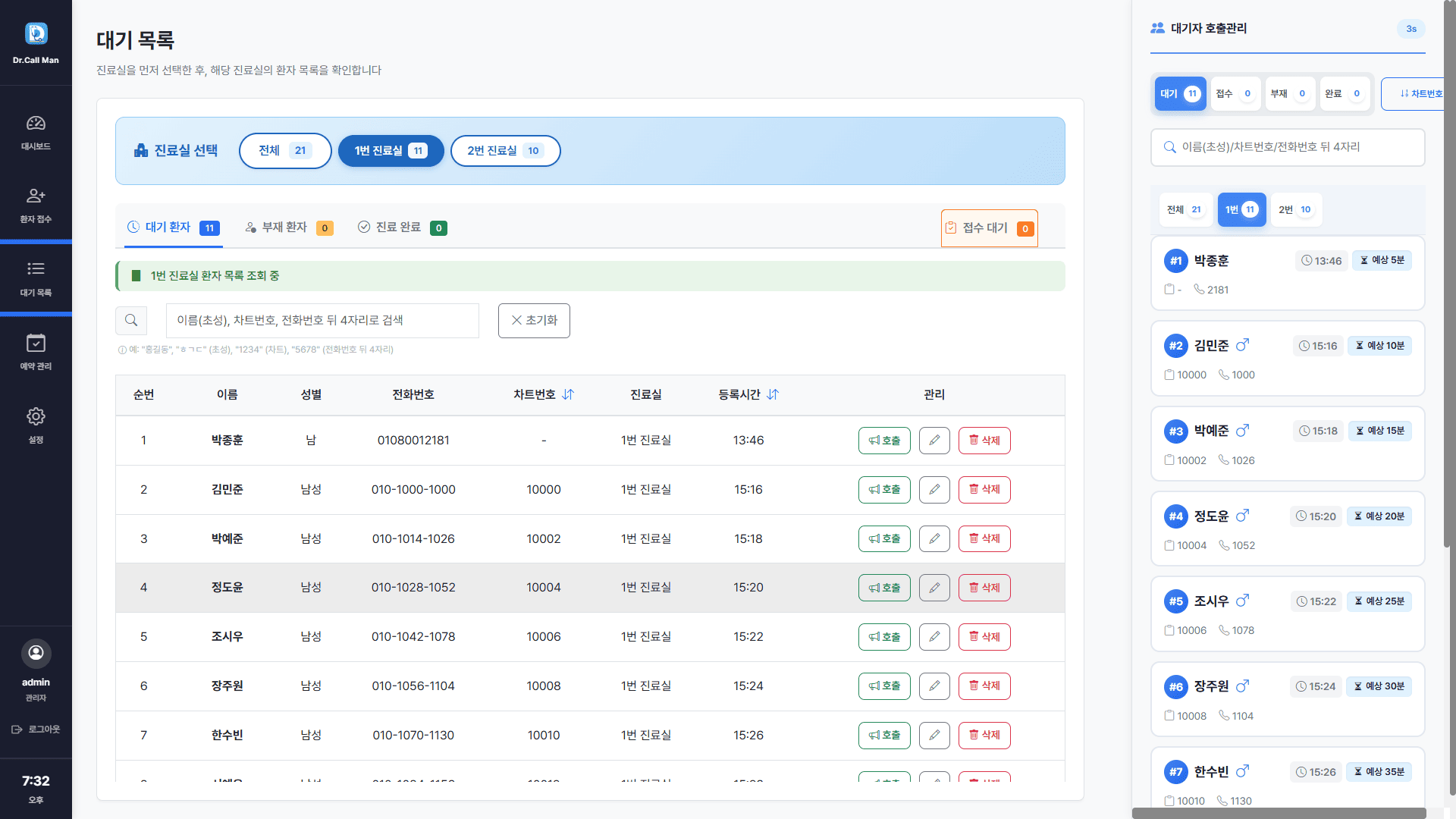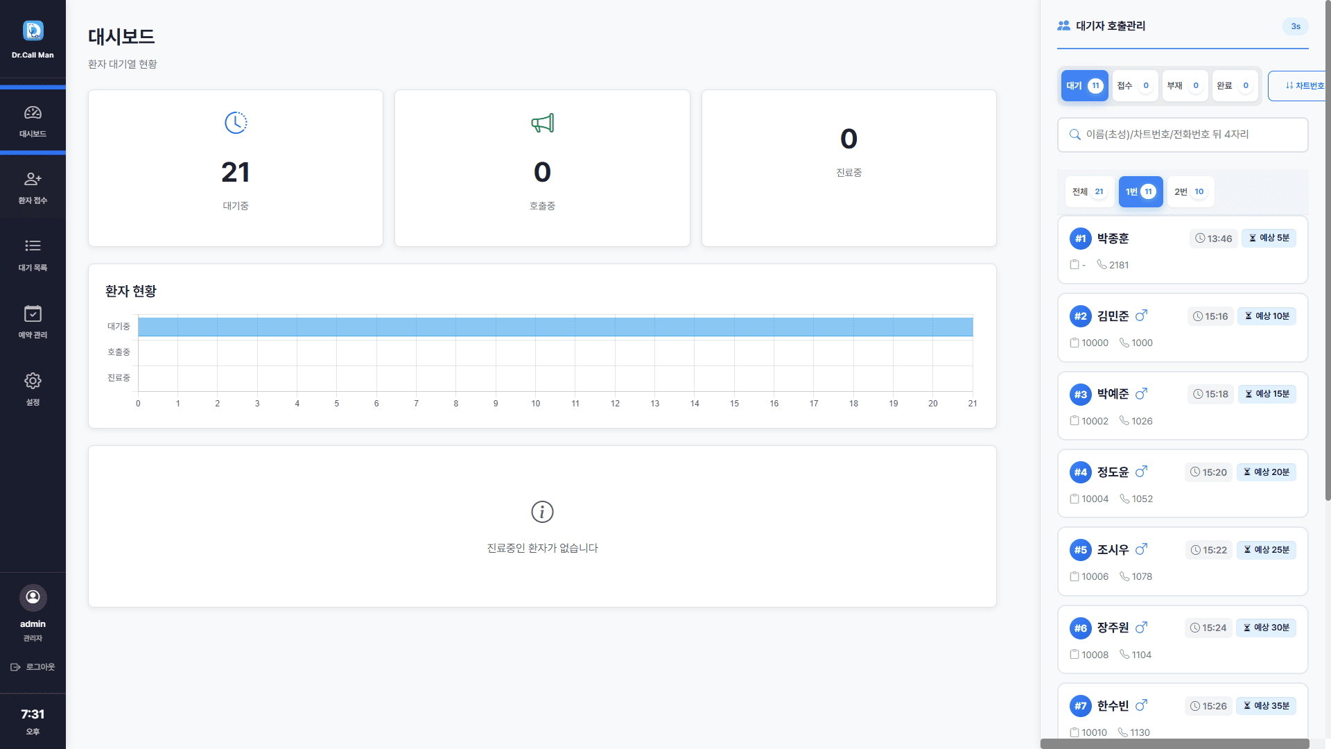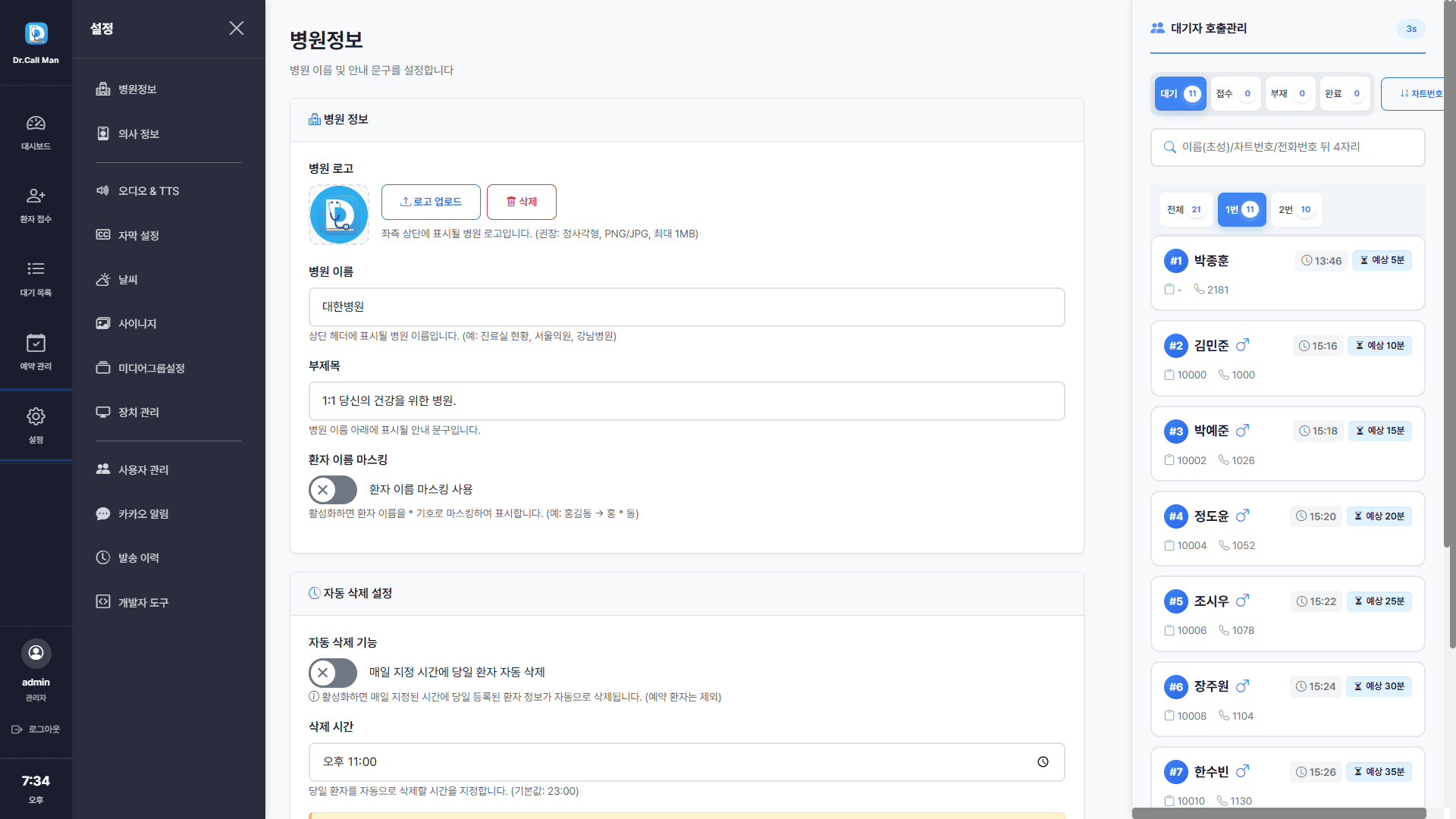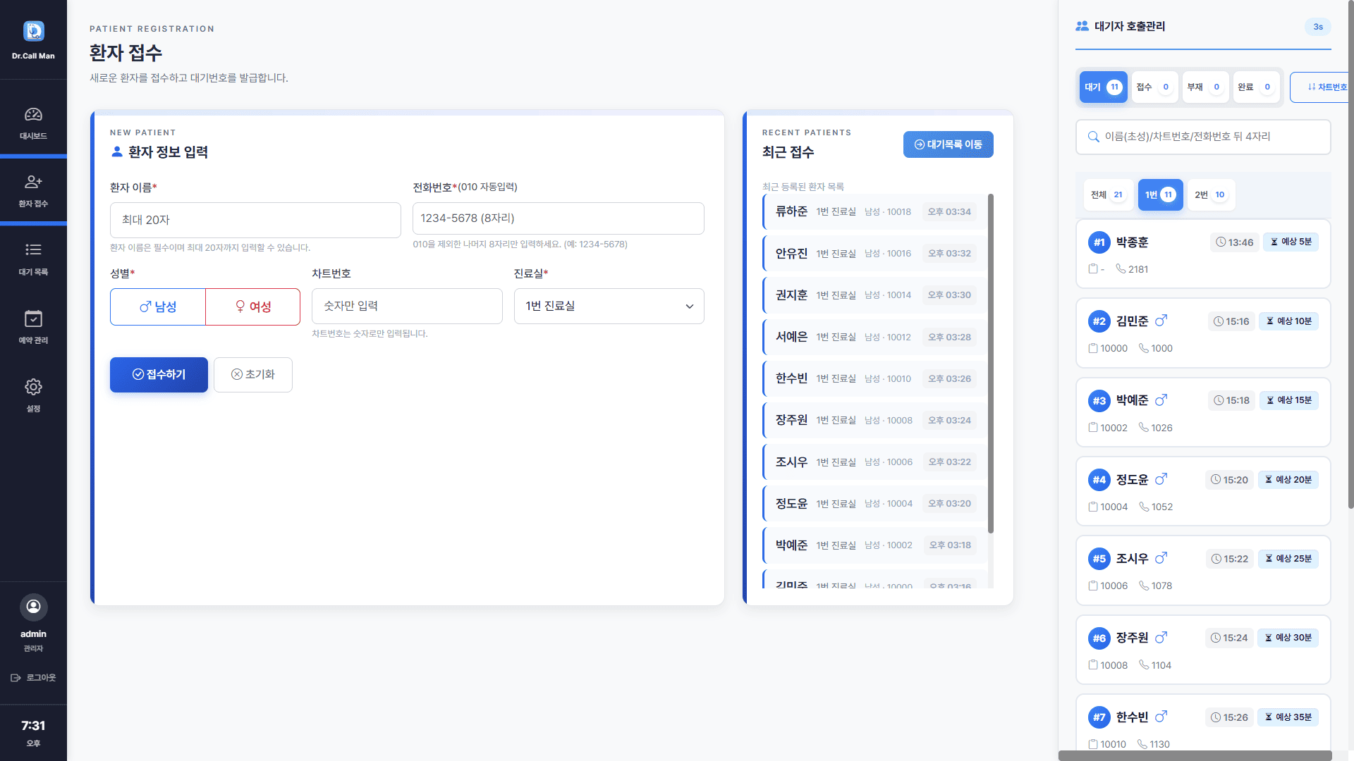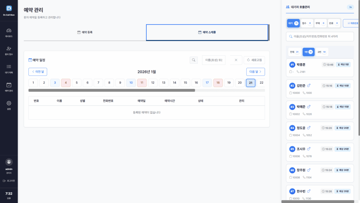 대기 환자 및 예약 환자 관리, 환자 호출, 수납 대기 현황 확인 등 다양한 기능을 직관적으로 활용할 수 있으며,