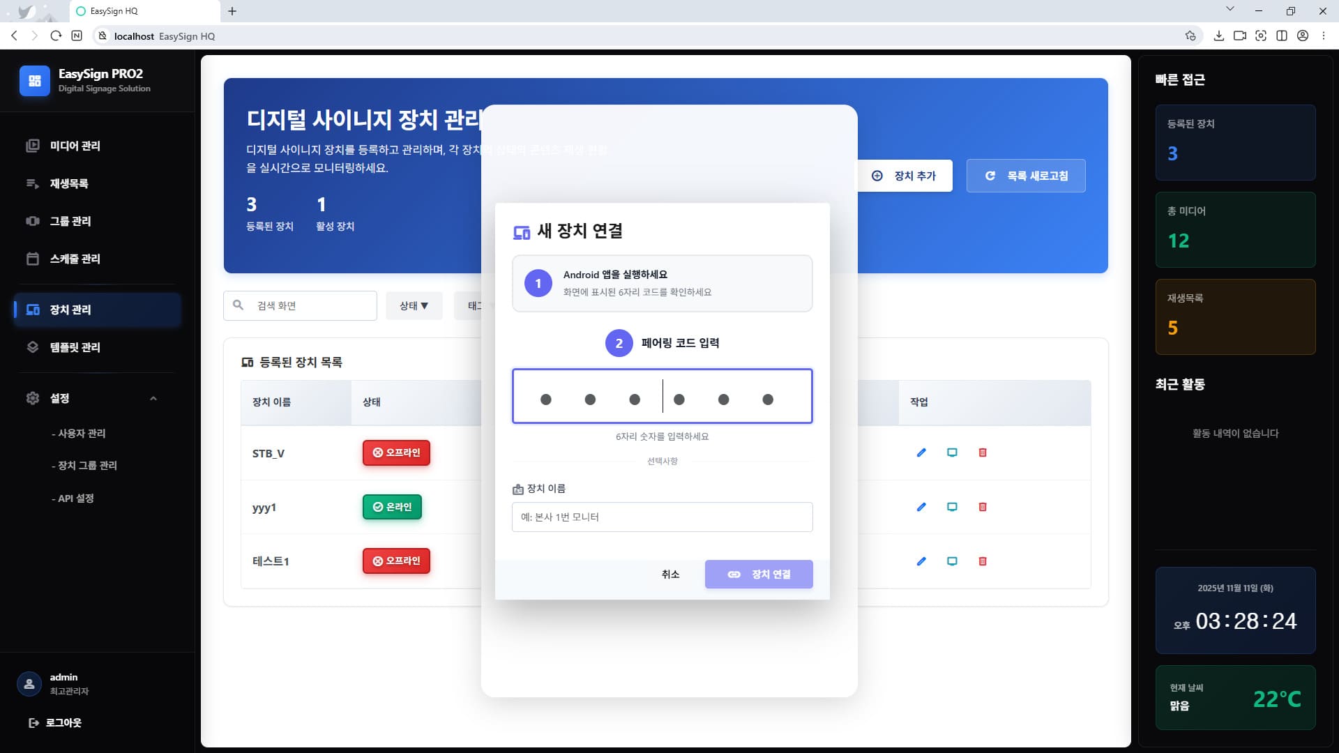여러 대의 전광판을 하나의 서버에서 통합 제어할 수 있어, 대형 광고나 행사장 운영에 탁월합니다. - 웹 기반 관리 시스템