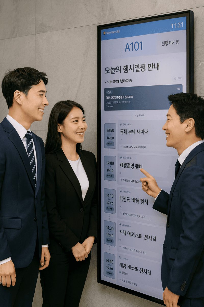 이지사인 뉴스플랜 솔루션은 문자 기반 뉴스 출력에 특화된 시스템으로, 빠르고 효율적인 정보 전달을 지원합니다. 입력 즉시 화면에 반영되는 실시간 업데이트 기능과 요일·기간별 출력 스케줄 설정으로 맞춤형 운영이 가능합니다. PC, 태블릿, 스마트폰 등 다양한 기기에서 원격 관리가 가능하며, 네트워크가 불안정한 환경에서도 안정적인 작동이 가능합니다. 기상청 연동을 통한 날씨 정보 제공, 테마 색상 변경, 직관적인 UI까지 갖춘 스마트 뉴스 솔루션입니다.