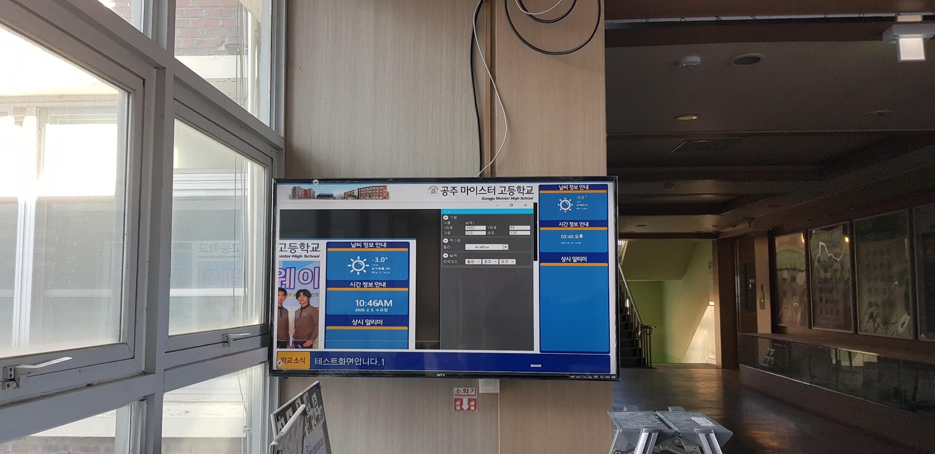 Client공주 마이스터 고등학교WebsiteView websiteTask디지털 사이니지 솔루션 / EasySIgn Standard Solution 빠른 정보 전달을 위한 멀티 레이어 기능 지원. 로비 입구에 배치하였으며, 다양한 정보를 빠르게 전달 가능. 빠른 정보 전달을 위한 멀티 레이어 기능을 이용한 템플릿 적용 테스트. 솔루션 개발 데모 화면 입니다. Share Related posts10월 15, 2020디지털 사이니지 솔루션Read more10월 15, 2020디지털 사이니지 솔루션Read more10월 15, 2020멀티전자게시판 솔루션Read more
